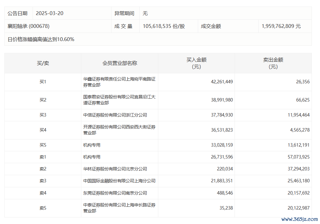 襄阳轴承今日涨停,1家机构专用席位净卖出3034.23万元襄阳轴承今日涨停,1家机构专用席位净卖出3034.23万元