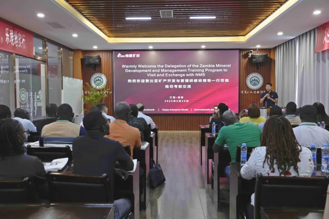 6月20日,赞比亚矿产开发与管理研修班领导一行莅临南昌矿机集团股份有限公司(以下简称“南矿集团”)考察交流,南矿集团海外市场部总经理孙继东等人热情接待。